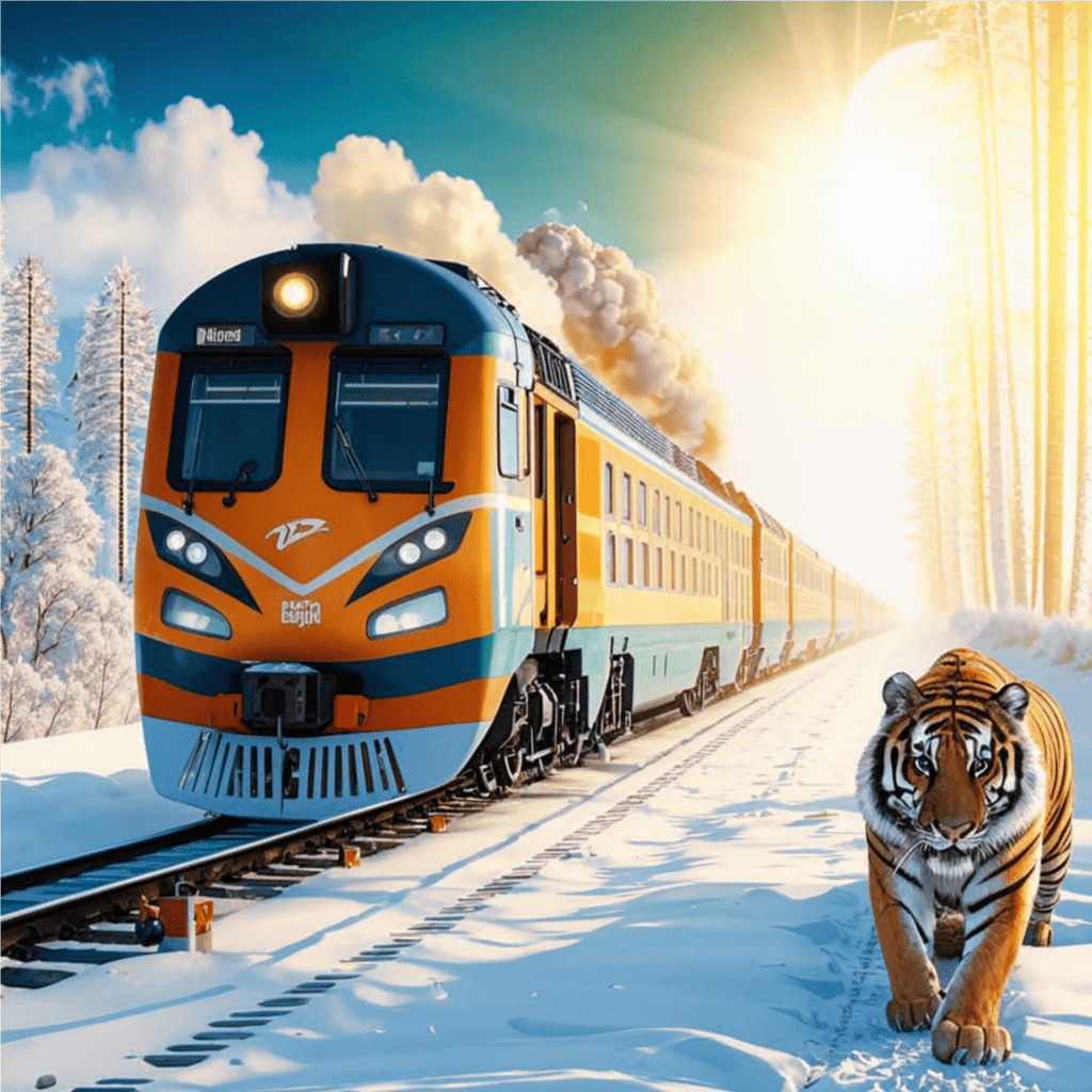 Красивый и мощный тигр, а рядом его не менее сильный механический сопровождающий.
